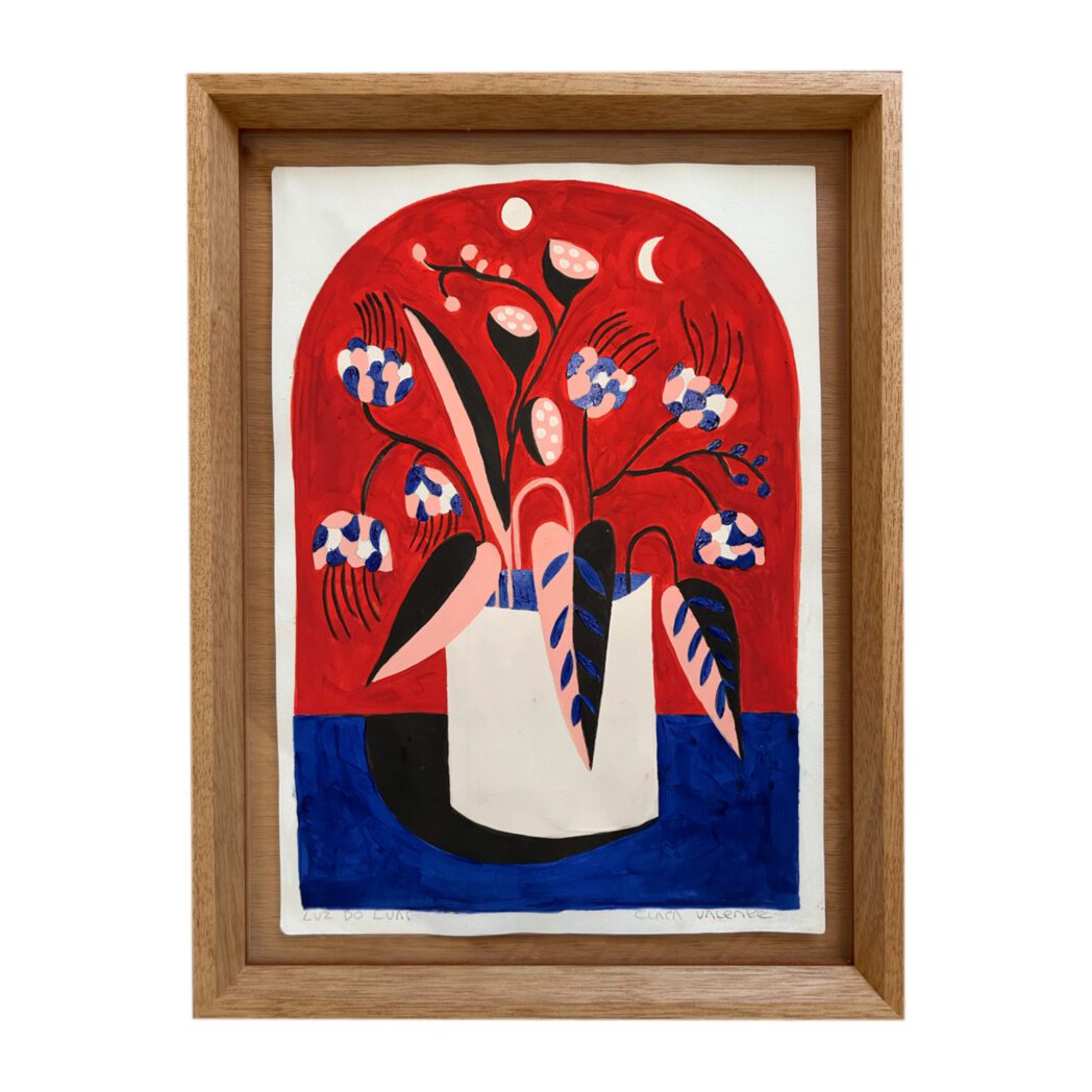 Acrílica sobre papel. Moldura em madeira e vidro.